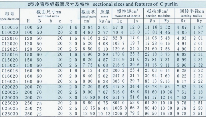 镀锌C型钢、热镀锌电缆桥架C型钢、 玻璃卡槽C型钢、玻璃幕墙C型钢、走线槽C型钢、 加筋C型钢、双抱C型钢、单边C型钢、 手动叉车C型钢、 不等边C型钢、直边C型钢、斜边C型钢、内卷边C型钢、内斜边C型钢、屋面(墙面)檩条C型钢、汽车型材C型钢、高速公路立柱C型钢、太阳能支架C型钢(21-80系列)、 模板支撑C型钢、设备用精密C型钢等等。